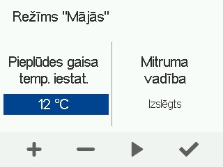 - Jūs varat pielāgot pieplūdes gaisa temperatūras iestatījumu un atspējot mitruma un oglekļa dioksīda kontroli.