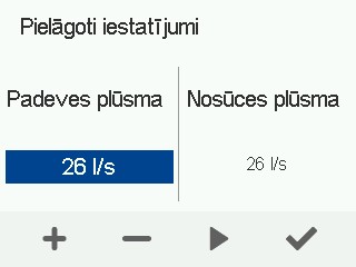 - Iestatiet pieplūdes un nosūces gaisa plūsmas režīmam Profils “Pielāgots” un pielāgojiet vārstus atbilstoši ventilācijas plānam.