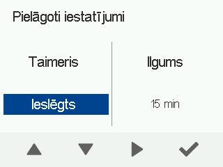 Režīms Profils “Pielāgots” tiek izmantots īpašos apstākļos, piemēram, lai kompensētu īslaicīgu negatīvo spiedienu, ko rada kamīns vai tvaika nosūcējs. Var iestatīt arī taimeri Profils “Pielāgots” režīmā. Šādās situācijās starpība starp pieplūdes un nosūces gaisa plūsmām nedrīkst pārsniegt 30%.