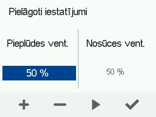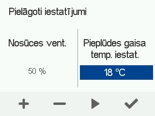 - Iestatiet režīma Profils “Pielāgots” ventilatora ātrumu un pieplūdes gaisa temperatūru.
