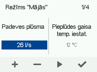 , līdz displejā parādās vēlamā ventilācijas režīma Mājās ikona:
