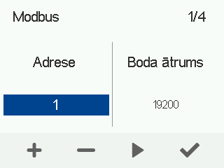 - Atlasiet Modbus iestatījumi ar bultiņu pogām: