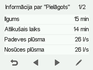 Ilgums — Norāda režīma Pielāgots ilgumu, kad režīms Pielāgots ir aktivizēts. Ilgums tiek norādīts stundās un minūtēs.