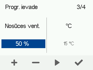 Atveras ekrāns, kurā var iestatīt pieplūdes gaisa ventilatora jaudu programmējamai ievadei: