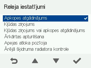 - Atlasiet Releja iestatījumi ar bultiņu pogām.