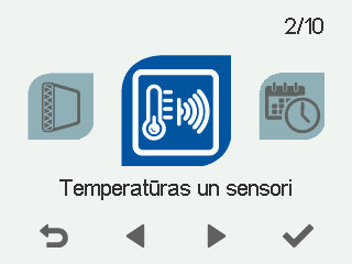 2. Atlasiet Temperatūras vērtības un sensori ar bultiņu pogām:
