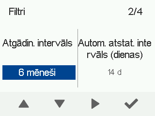 Atlasiet filtra atgādinājuma režīmu:- Ieslēgts - Atgādinājums par filtriem ir iespējots un jāapstiprina manuāli.
