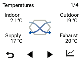 - Atlasiet vienumu Bultiņa pa labi, lai piekļūtu mitruma un oglekļa dioksīda informācijai.