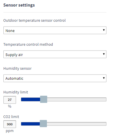 Anglies dioksido riba nurodo anglies dioksido kiekį ore. Kai ribinė vertė viršijama, vėdinimo įrenginys sustiprina vėdinimą. Jei naudojamas daugiau nei vienas anglies dioksido jutiklis, ventiliatoriaus greitis reguliuojamas pagal aukščiausią lygį. Anglies dioksido jutiklis yra papildomas priedas.