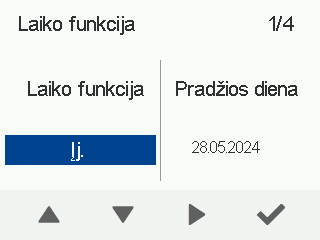 Kai suplanuota funkcija aktyvinama, savaitinė programa išjungiama. Jei savaitinė programa buvo aktyvi prieš suplanuotos funkcijos aktyvinimą, ji automatiškai vėl aktyvinama pasibaigus nustatytam laikotarpiui.