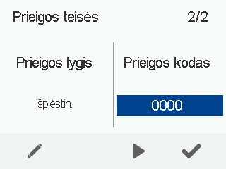PASTABA:Norėdami patvirtinti prieigos lygio apribojimus, įveskite prieigos kodą.