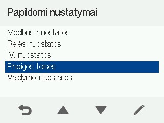 2. Naudokite rodyklių mygtukus prieigos lygiui pasirinkti.