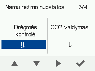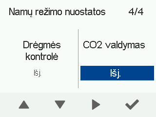 - Naudokite rodyklių mygtukus, kad įjungtumėte arba išjungtumėte automatinį ventiliatoriaus greičio reguliavimą pagal anglies dioksido kiekį.