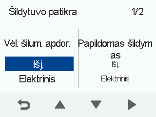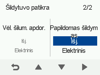 - Naudokite rodyklės aukštyn mygtuką papildomo šildymo rezistoriui įjungti.