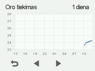 Parodomas grafikas, vaizduojantis tiekiamo oro temperatūrą per pastarąsias 24 valandas: