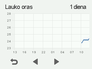 Parodomas grafikas, vaizduojantis vidaus oro temperatūrą per pastarąsias 24 valandas: