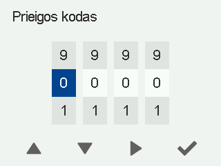 Kai prieigos kodo užklausa yra aktyvi, ekrane rodoma užrakto piktograma. Prieigos kodą sudaro keturi skaitmenys.
