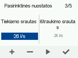 Atsidaro tiekiamo oro srauto valdymo ekranas:
