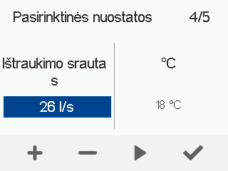 - Naudokite Plius ir Minus mygtukus ištraukiamo oro išeigai nustatyti.
