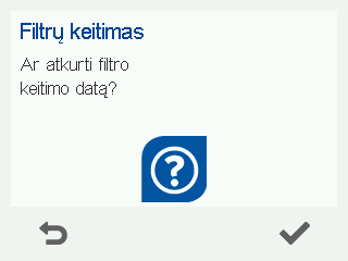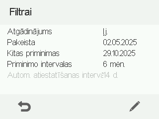 Atveriamas Filtrų keitimas ekranas: