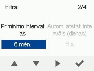 - Išjungta – priminimas dėl filtrų yra išjungtas.