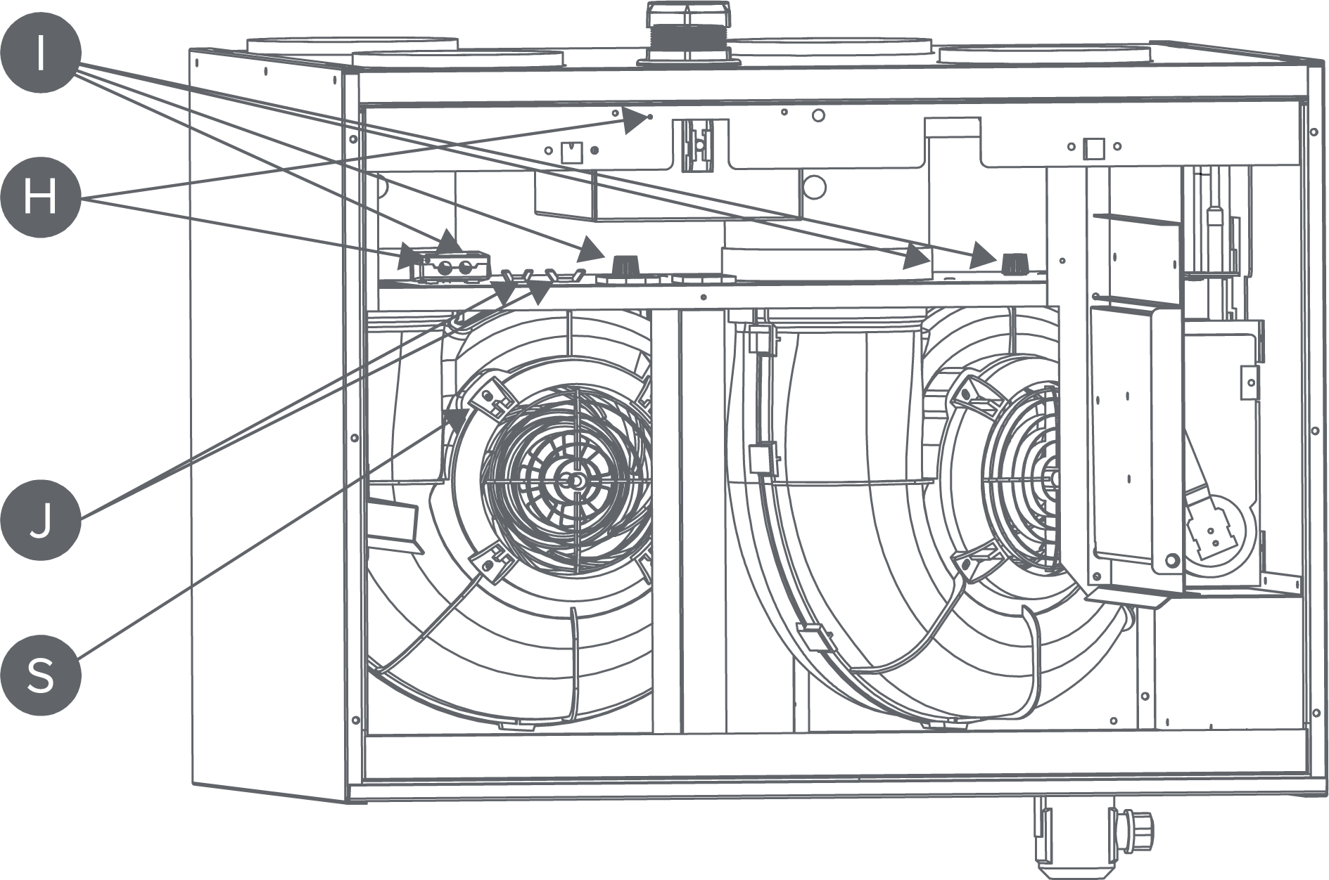 kiekvienam ventiliatoriui). Išsukite baigiamojo šildymo rezistoriaus (G) sparnuotuosius varžtus (J) (2 vnt.) (tik keičiant tiekiamo oro