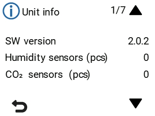 - Programinės įrangos versija – vėdinimo įrenginio programinės įrangos versija