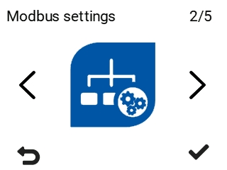 - Rodyklių mygtukais pasirinkite „Modbus“ nuostatos.