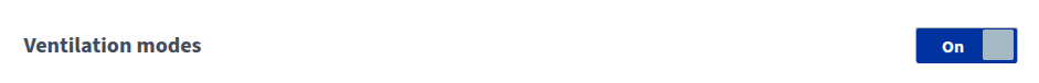 3. Włącz lub wyłącz urządzenie, używając przycisku Włączenie/Wyłączenie po prawej stronie Tryby wentylacji tekstu.