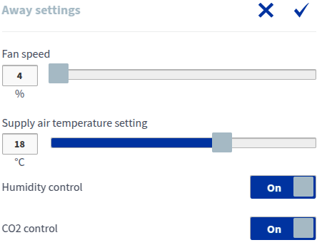 - Kliknij tryb Poza domem w obszarze Tryby wentylacji, aby go wybrać.