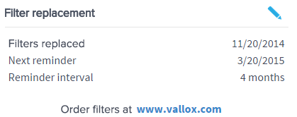 Ekran Wymiana filtrów otworzy się w trybie edycji: