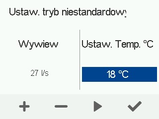 Tryb Niestandardowy jest używany w szczególnych okolicznościach, na przykład aby zrekompensować tymczasowe podciśnienie spowodowane przez kominek lub okap kuchenny. W takich sytuacjach różnica między przepływami powietrza nawiewanego i wywiewanego nie powinna przekraczać 30%.