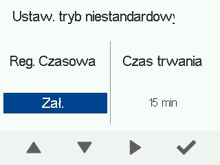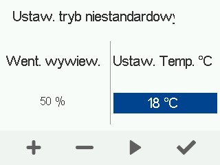 Tryb Niestandardowy jest używany w szczególnych okolicznościach, na przykład aby zrekompensować tymczasowe podciśnienie spowodowane przez kominek lub okap kuchenny. Dla trybu Niestandardowy można również ustawić regulację czasową. W takich sytuacjach różnica między przepływami powietrza nawiewanego i wywiewanego nie powinna przekraczać 30%.
