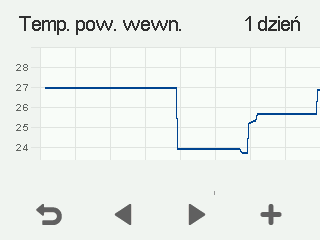 Pojawia się wykres przedstawiający temperaturę powietrza wewnętrznego z ostatnich 24 godzin: