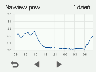 Pojawia się wykres przedstawiający temperaturę powietrza nawiewanego z ostatnich 24 godzin: