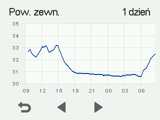 Pojawia się wykres przedstawiający temperaturę powietrza zewnętrznego z ostatnich 24 godzin: