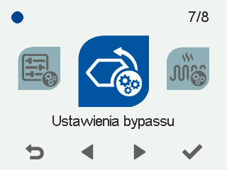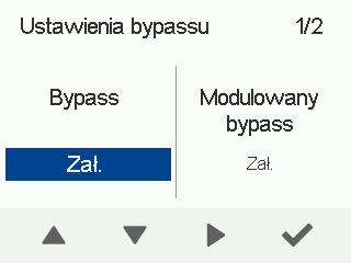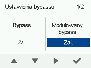- Wybierz Ustawienia obejścia zespołu wymiennika ciepła za pomocą przycisków strzałek