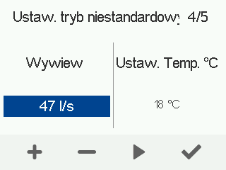 - Użyj przycisków Plus i Minus, aby ustawić wydajność wywiewu powietrza.