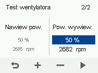 Przeprowadź test wentylatora, aby łatwo sprawdzić działanie wentylatorów urządzenia wentylacyjnego.
