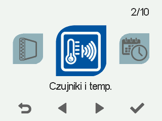- Wybierz Temperatury i czujniki menu lub przycisk informacji w widoku głównym: