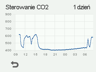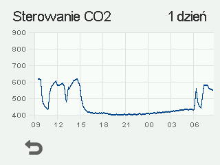 - Zostanie otwarty wykres przedstawiający trend stężenia dwutlenku węgla w ciągu ostatnich 24 godzin zmierzony przez czujnik, który wskazał najwyższą wartość: