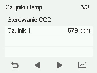 Zostanie otwarty ekran pokazujący poziom dwutlenku węgla mierzony przez czujniki dwutlenku węgla 1–3.