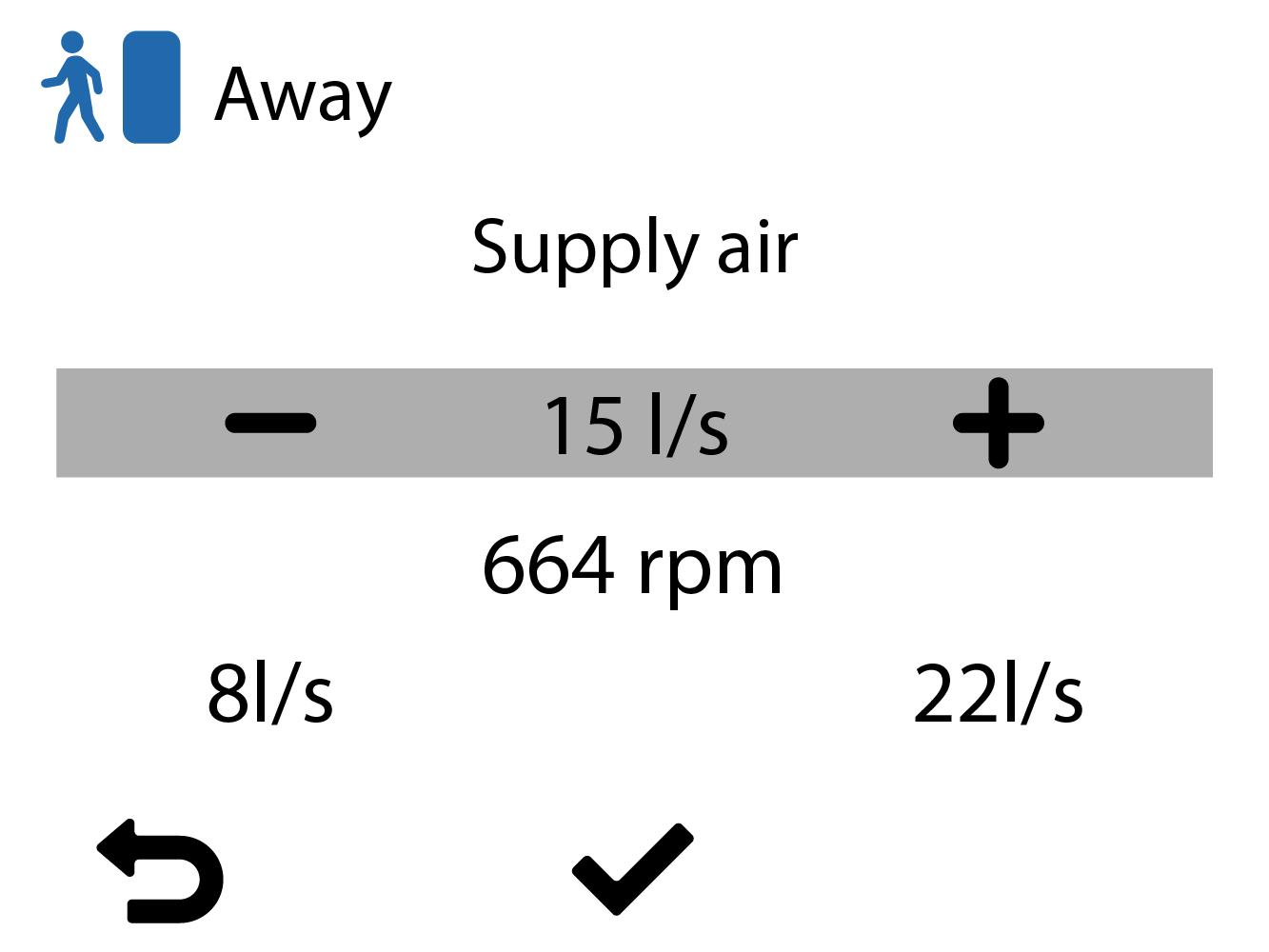 Przepływy powietrza w trybie Poza domem są automatycznie o 30% niższe niż przepływy powietrza w trybie W domu, ale mogą zostać dostosowane.