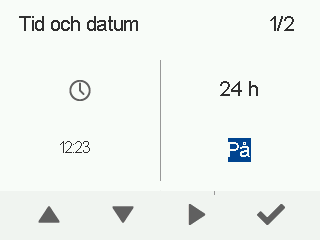 Som standard används 24-timmars klockan. Om du vill använda 12-timmars klockan: