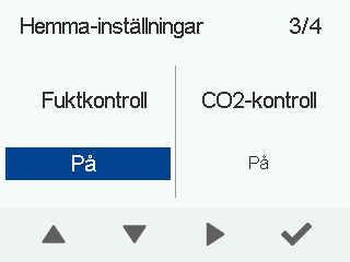 - Med hjälp av pilknapparna kan du aktivera eller avaktivera den automatiska justeringen av fläkthastigheten utgående från koldioxidhalten.