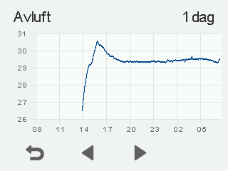 Ett diagram som visar frånluftens temperatur under de senaste 24 timmarna visas: