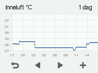 Ett diagram som visar inomhusluftens temperatur under de senaste 24 timmarna visas: