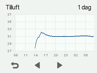 Ett diagram som visar tilluftens temperatur under de senaste 24 timmarna visas:
