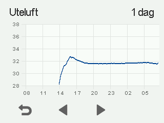 Ett diagram som visar utomhusluftens temperatur under de senaste 24 timmarna visas: