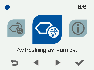 - Välj Avfrostning av värmeväxlaren med pilknapparna: